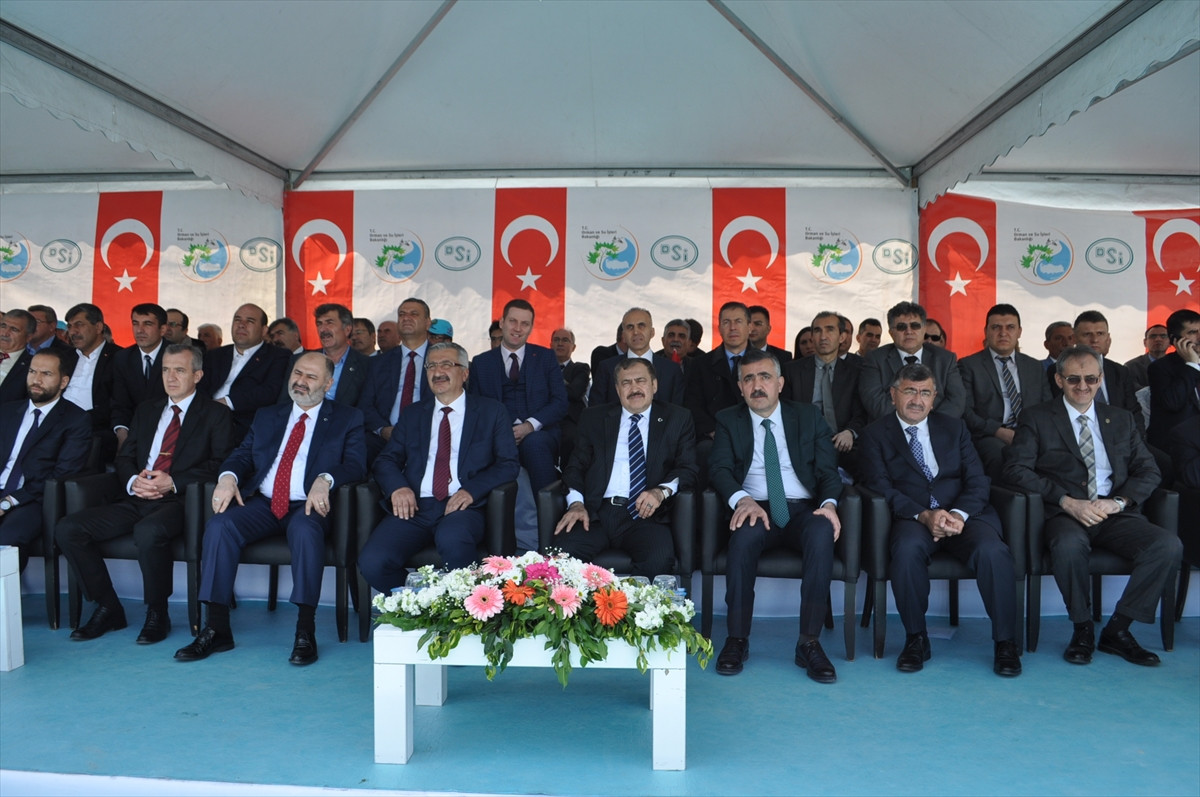 Eroğlu ve protokol üyeleri, konuşmanın ardından 5 aileye gelir getirici fidan, 17 aileye ORKÖY sertifikası verdi. Daha sonra DSİ tarafından inşa edilecek ve 65 milyon liraya mal olacak 9 tesisin temeli atıldı.
