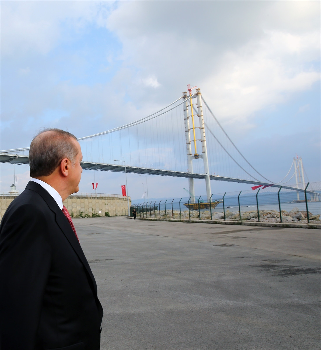 "İzmir'e bugün İstanbul'dan kara yoluyla gidiş 8 saati aşıyor. İnşallah köprü ve devamındaki otoyolla birlikte bu süre, 3 saatin altına inecek. İşte medeniyet bu. Vakit nakittir dedik; dünyanın sayılı projelerinden, önemli projelerinden birini bugün aziz milletimizin hizmetine veriyoruz. Hayırlı uğurlu olsun. 50 yıl boyunca bu köprü 'yapıldı yapılacak' diye zaman kaybettik. Ne zamana kadar? Bir ses yükseldi İstanbul'dan, bir kutlu yürüyüş başladı. AK Parti'nin ayak sesleriydi. 2002 Kasım seçimlerinde liderliğinizde iş başına gelen AK Parti Türkiye'nin makus tarihini değiştirecek, önemli hizmetleri birer birer milletimizin kullanımına sunuyor."