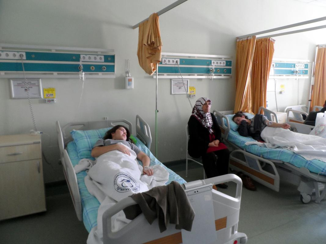 Kaymakam Muhittin Pamuk ve İlçe Milli Eğitim Müdürü Sami Cömert hastaneye gelerek, tedavi altına alınan 12 öğrencinin durumu hakkında bilgi aldı.
