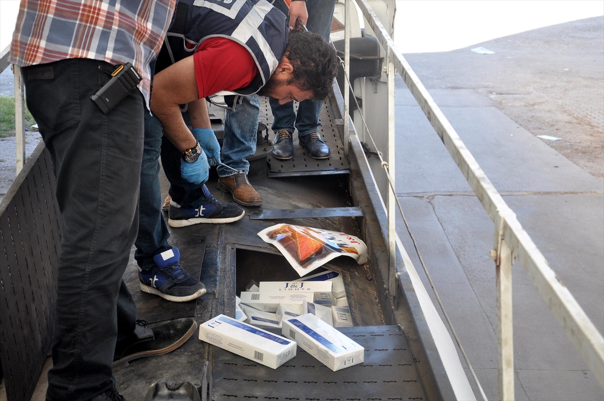 Detaylı arama için Emniyet Müdürlüğü bahçesine götürülen araçta, gizli bölmelere saklanmış 51 bin paket kaçak sigara ele geçirildi.