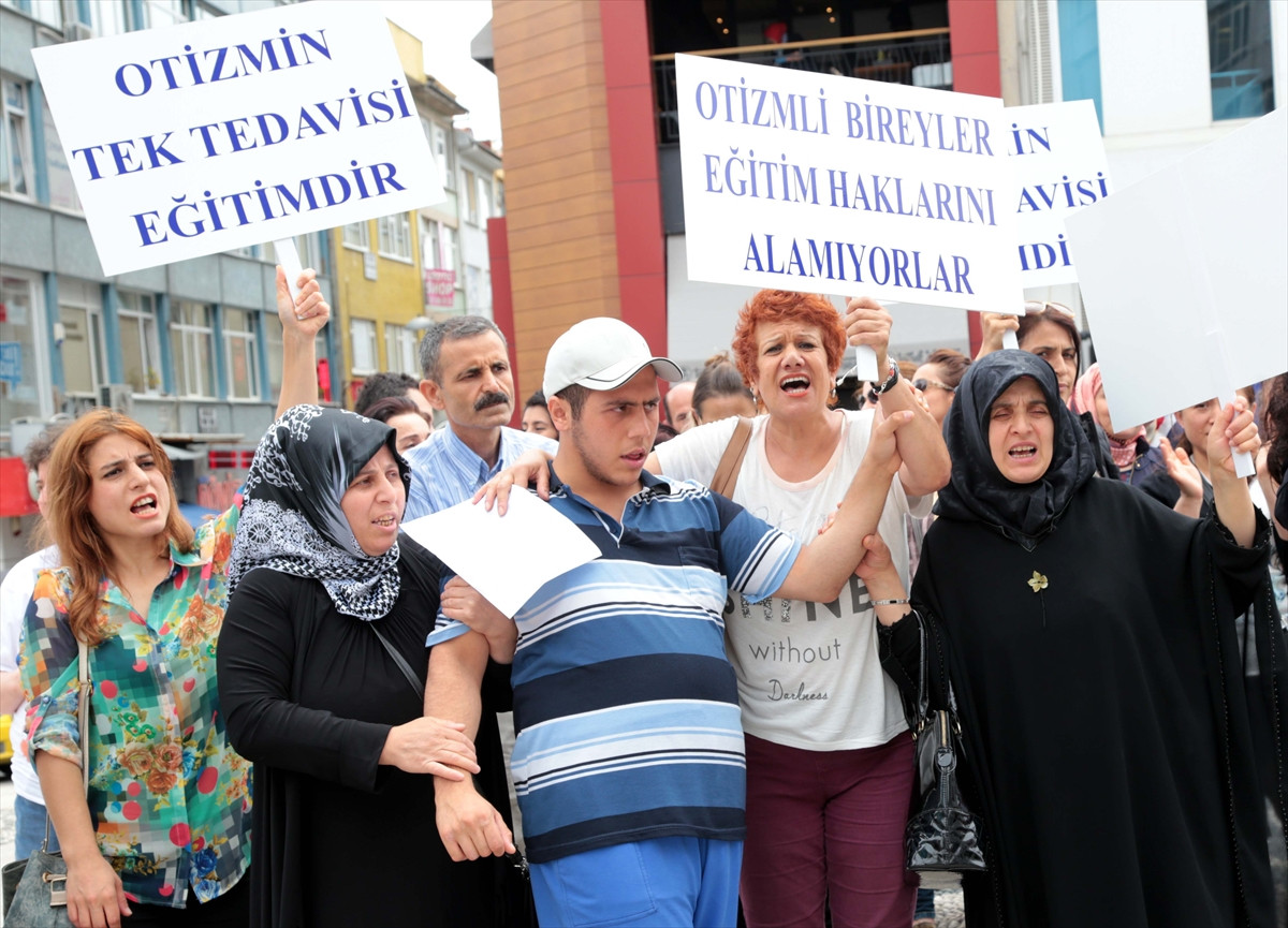 Kadıköy Altıyol'da toplanan otizmli çocuklar ve aileleri, "Otizmin çaresi mezun etmek değildir" yazılı pankart ve "Otizmli bireyler eğitim haklarını alamıyorlar", "Otizmli çocuklar hepimizin çocuklarıdır" yazılı döviz açtı.