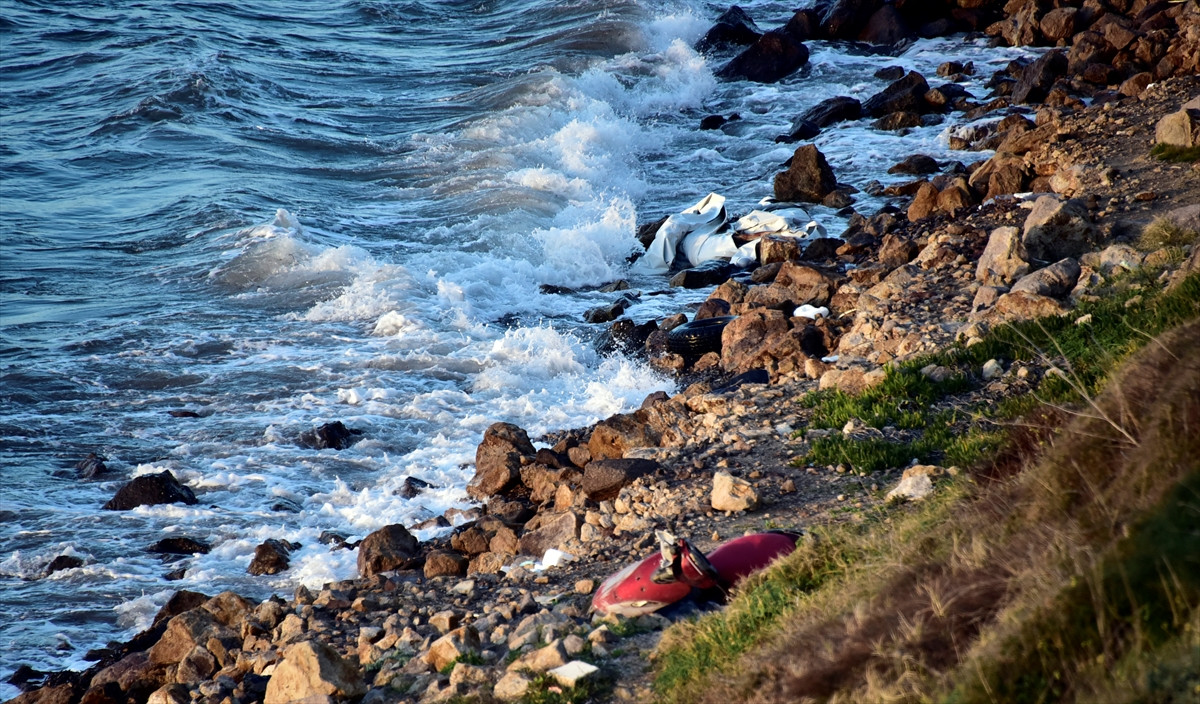 Öte yandan sahil bölgesinde, yabancı uyrukluların bıraktığı özel eşyalar ve kullanılamaz durumda lastik botlar bulundu.