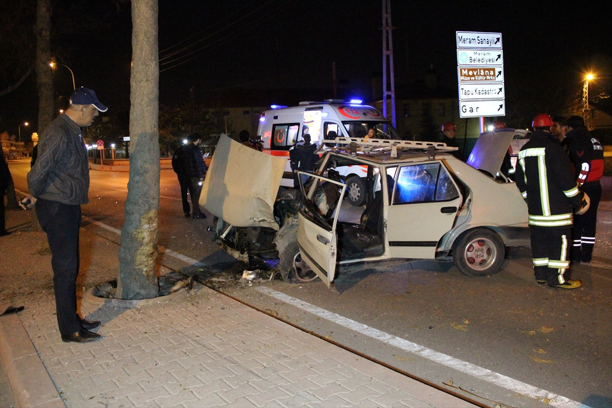 Mehmet Ali Güler yönetimindeki 42 J 0960 plakalı otomobil, merkez Meram ilçesi Büyük Kovanağzı Mahallesi Hatıp Caddesi'nde, sürücünün direksiyon hakimiyetini kaybetmesi sonucu refüjdeki ağaca çarptı.