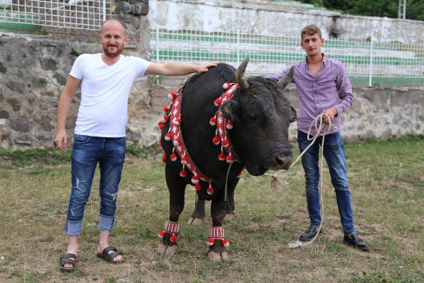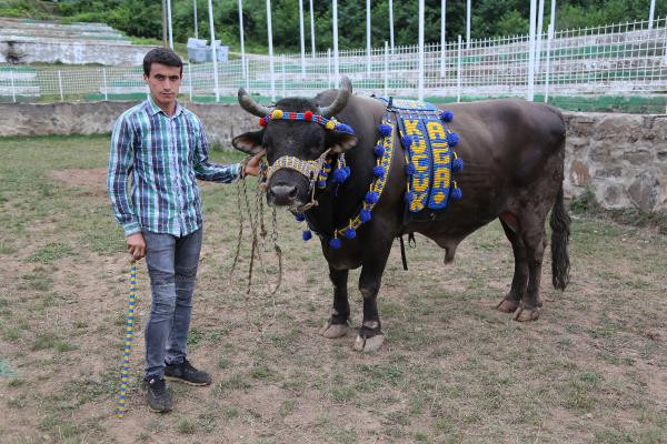 Şampiyonaya katılmak üzere Muğla’dan Artvin’e getirilen ve kariyerinde 20’nin üzerinde kupa alma başarısı elde eden 13 yaşında 800 kilogram ağırlığındaki 'Küçük Ağa' adlı boğa ilgi odağı oldu. Yaklaşık 100 bin lira değerindeki boğanın sahibi Ali Rıza Yanardağ, "Küçük ağa 13 yaşında. 10 yıldır arenalarda yaklaşık 20 üzerinde kupası ve birincilikleri bulunuyor. Boğamı zevk alarak besliyorum. Onu özel besilerle besliyor, şampiyonaya hazırlıyorum. Güçlenmesi için kızak çektirip yürüyüş yapıyoruz. ‘Küçük ağa’ çok sakin bir boğa, fakat arenada öyle değil, çok hırcındır” dedi.