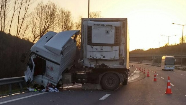 Kaza nedeniyle kapanan Karabük-Zonguldak karayolu, jandarma ekiplerinin kontrolünde tek şeritten belirli aralıklarla sağlandı.