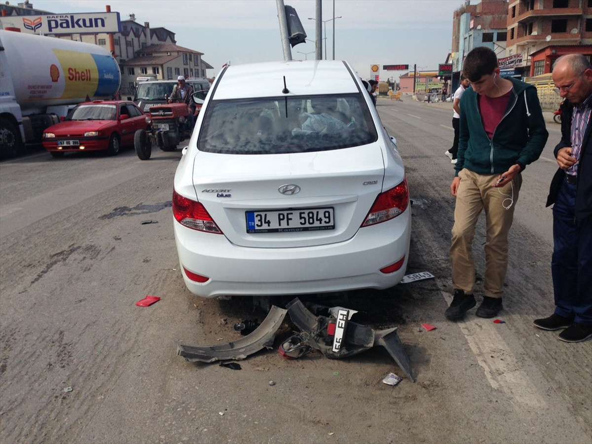 Murat Arı yönetimindeki 34 PF 5849 plakalı otomobil, Samsun-Sinop karayolu Kolay Kavşağı'nda Batuhan Çağlayan'ın kullandığı (16) 55 FH 396 plakalı motosiklete vurduktan sonra elektrik direğine çarparak durabildi.