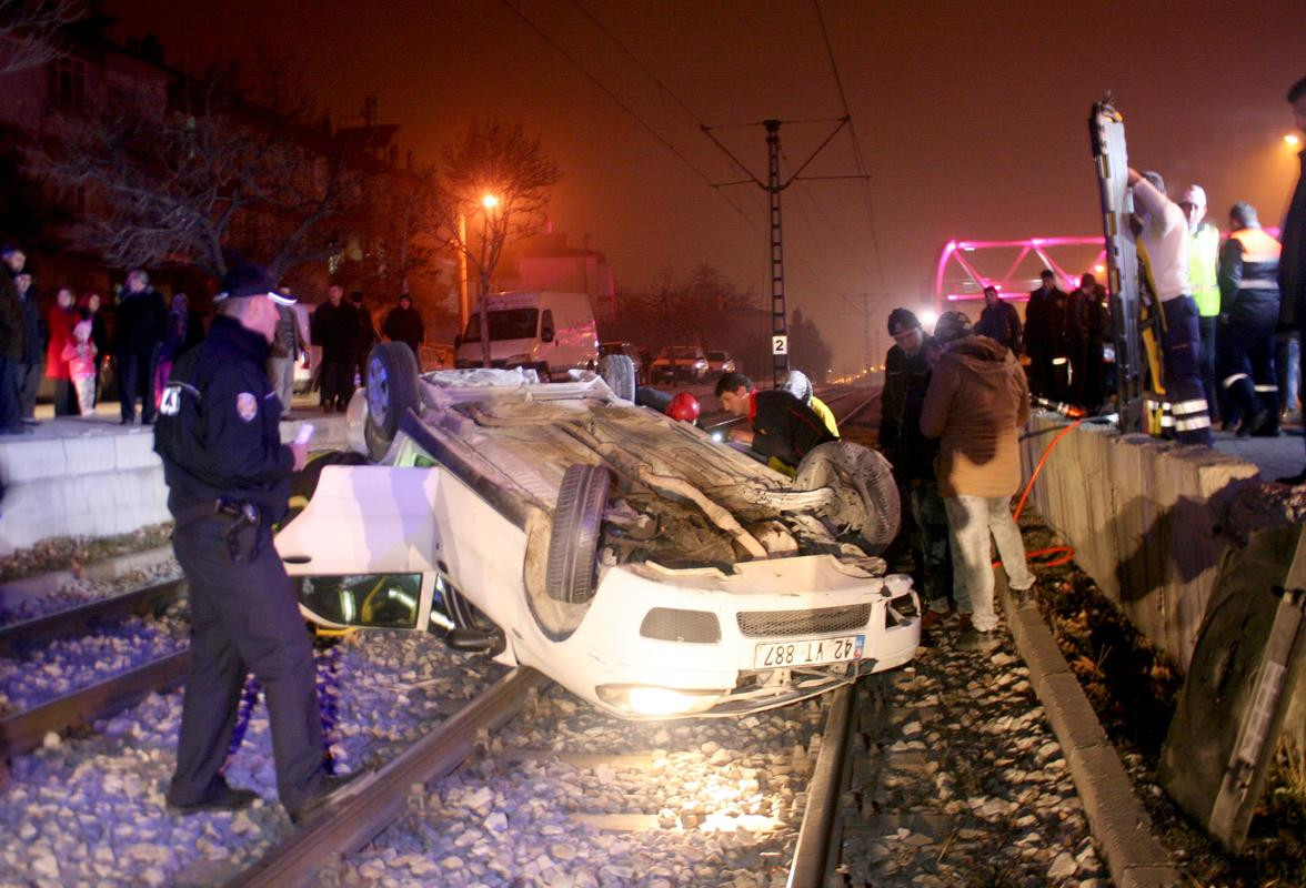 Soner Poyraz idaresindeki 42 VT 887 plakalı otomobil, merkez Selçuklu ilçesi Yeni İstanbul yolunda, sürücünün direksiyon hakimiyetini kaybetmesi sonucu tramvay yoluna girdi.