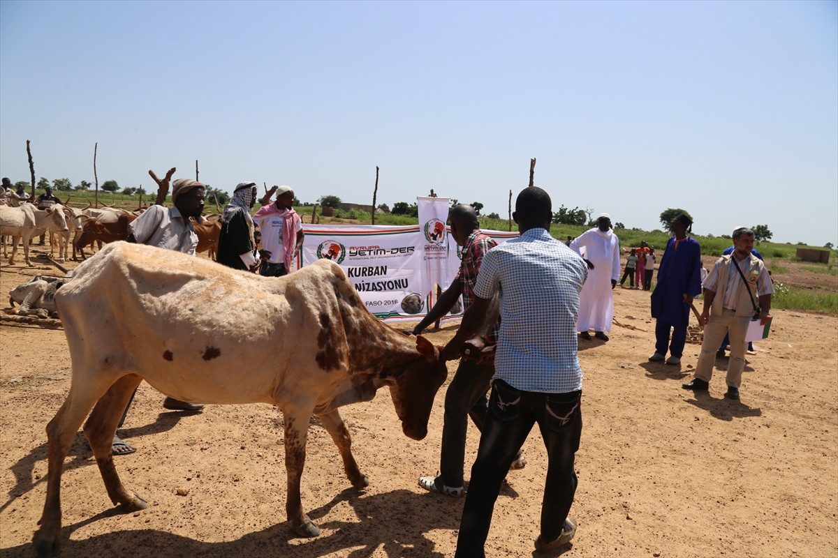 "Avrupa'daki hayırsever vatandaşlarımızın kurban vekaletlerini alarak Batı Afrika'nın Burkina Faso ülkesindeki fakir ve yetim ailelere dağıtmak üzere bugün bayram namazından sonra kesimlere başladık. İlk kesimimizi başkent Ouagadougou'ya 3 saat mesafede olan köylerde yaptık. Kesilen kurbanları daha sonra ekiplerimiz tarafından parçalanarak paketler halinde küçük çocuklar, yetimler, engelli kardeşlerimiz ve dul kadınlara dağıttık. Buradaki insanların ekonomik durumu çok kötü ve belki bazıları hayatlarında ilk defa kurban etini yiyor. Kurban kesimi yaptığımız bölgeleri özelikle yoksul kesimin olduğu yerlerden seçiyoruz. Bugünkü kesimlerimizde de insanların yaşam koşullarını gördüğümüzde durumlarının çok kötü olduğunu anlıyoruz."