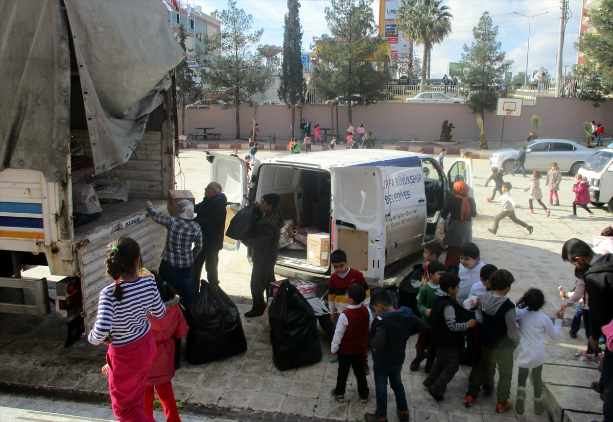 ŞANLIURFA (AA) - Haliliye İlçe Milli Eğitim Müdürlüğünce okullarda başlatılan kampanya kapsamında toplanan oyuncak, gıda, battaniye ve giyim malzemeleri Halep'e gönderildi.