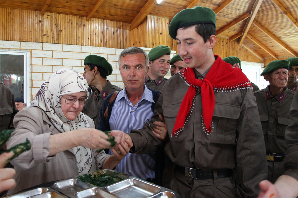 Askerlik tıraşı da olan öğrenciler, Türk bayrağını öperek ailelerine ve askeri erkana selam verdi.