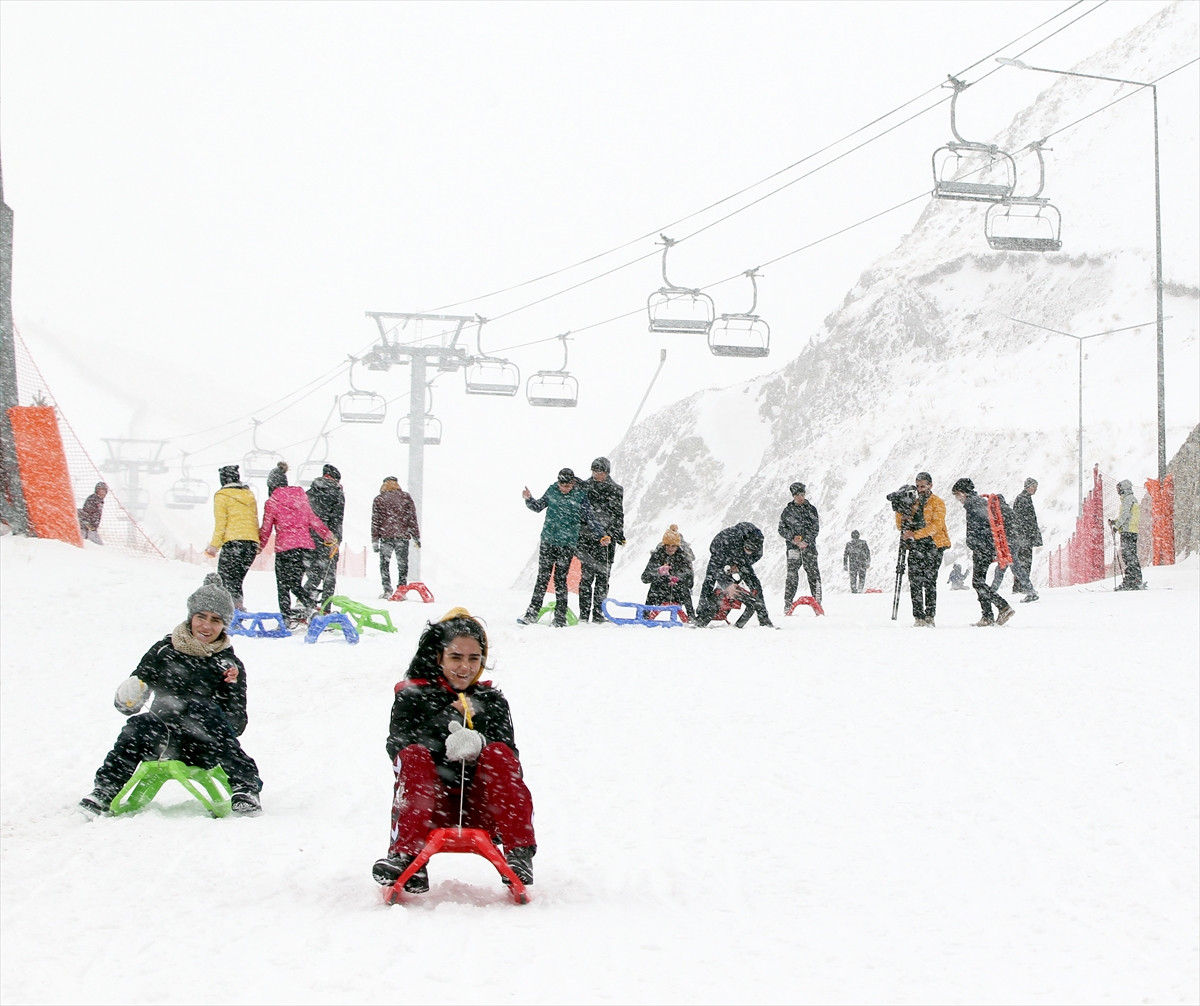 Otellerin kayak pistleri dolduran çok sayıda yerli ve yabancı turist, kar yağışı altında kayarak, eğlenceli anlar yaşadı.