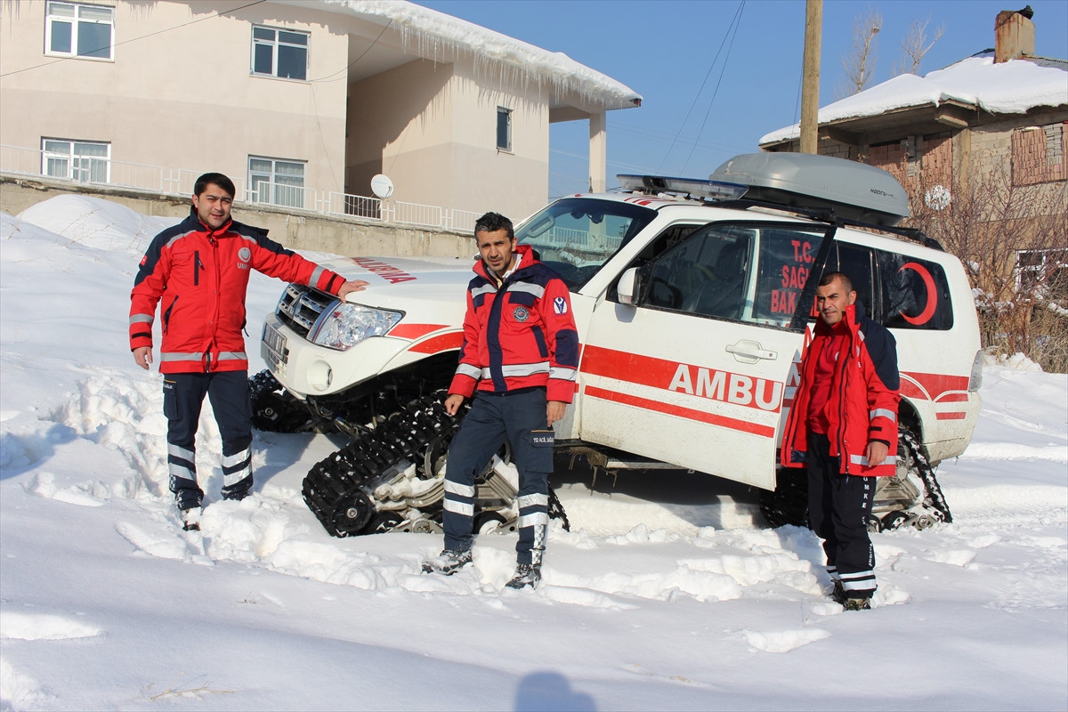Sağlık Bakanlığınca bölgenin zorlu coğrafya koşulları dikkate alınarak gönderilen 9 paletli kar ambulansı, Hakkari'de mahsur kalan hastaların imdadına yetişiyor.