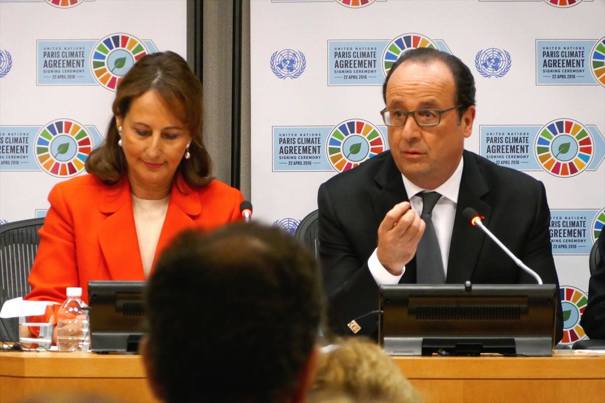 Paris Anlaşmasını ''Tarihin doğru tarafında bulunma ve değişim konusunda bir şans" diye niteleyen Hollande, ''Paris Anlaşması, düşük karbonlu büyüme ve refah yolunda dünyanın yeni bir yöne doğru hareket için hazır olduğunu gösterdi.'' dedi.