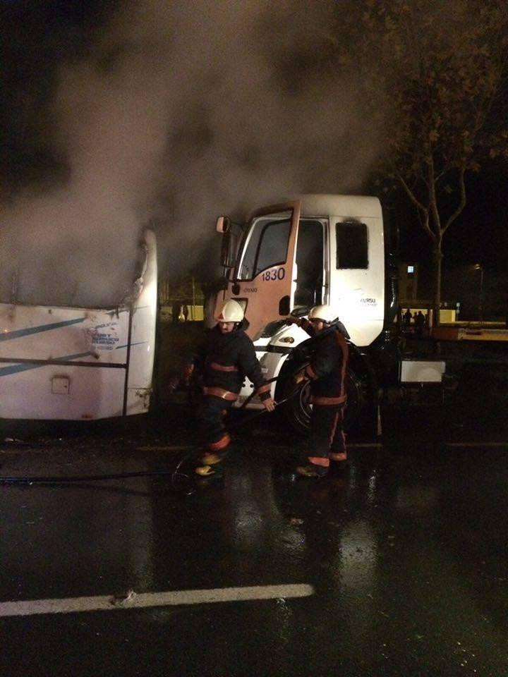 Alınan bilgiye göre, Orhangazi Mahallesi Eşref Bitlis Bulvarı üzerinde park halindeki, bir sürücü kursuna ait midibüs ile tır çekicisi, kimliği belirsiz kişi veya kişiler tarafından molotofkokteyl atılması sonucu yanmaya başladı.