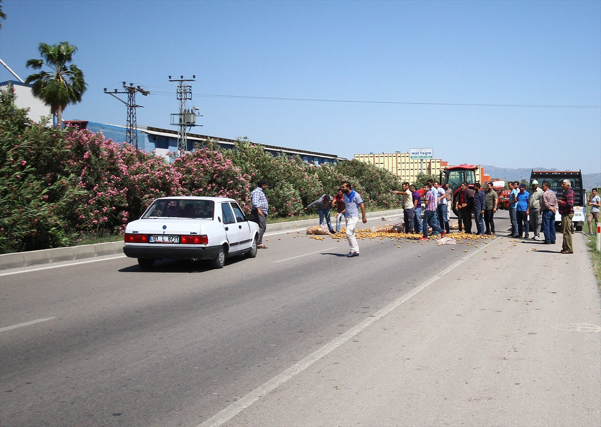 ADANA (AA) - Adana'da bir grup üretici, değerinde satamadıkları gerekçesiyle yola patates dökerek eylem yaptı.