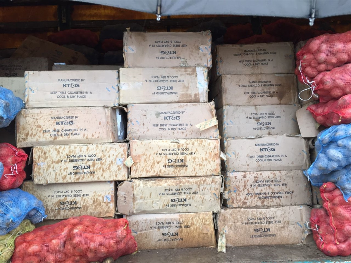 Aramada, patates çuvallarının arasına gizlenmiş 167 bin paket kaçak sigara bulundu.