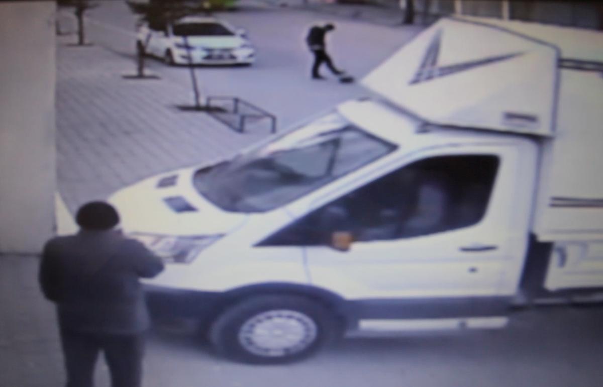 Ses bombasının infilak etmesinin ardından otomobiliyle bulvarda ilerleyen sürücü aracından iniyor, yol ortasındaki şüpheli pakete tekme atıyor, kameranın görüş açısından çıkarak ayağıyla kaldırımın kenarına sürüklediği paketi çöp bidonuna bırakıyor.