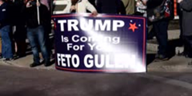 ABD yapılan seçimlerde işadamı Donald Trump'ın 45. Amerika Başkanı seçilmesinin ardından Pensilvanya eyaletinde düzenlenen gösteride Fetullahçı Terör Örgütü (FETÖ) elebaşı Fetullah Gülen aleyhine pankart açıldı. ABD'de başkanlık seçimlerinden zaferle çıkan Cumhuriyetçi Parti adayı Donald Trump'a karşı başta New York, Chicago ve Kaliforniya olmak üzere 4 gündür ülke genelinde çeşitli eyaletlerde protestolar gerçekleştirilirken Cumhuriyetçi adayın 20 seçici kurul üyesi kazandığı Pensilvanya'da da iki karşıt grubun gösterileri vardı. Demokrat Parti başkan adayı Hillary Clinton'u destekleyen yaklaşık 100 kişilik bir grubun Eston kent merkezinde düzenlediği gösteriler devam ederken yaklaşık 30 kişilik Trump taraftarlarıda karşı kaldırımda ellerinde Amerikan bayraklarıyla Trump için destek sloganları attı. FETÖ elebaşı Gülen'in kaldığı Saylorsburg'daki çiftliğe yaklaşık 30 kilometre mesafede bulunan Easton kentinde düzenlenen gösteriler sırasında Trump destekçileri, Gülen'in bölgelerinde olmasından duydukları rahatsızlığı da pankart açarak gösterdi. Trump destekçileri, Gülen'i işaret ederek üzerinde "Trump senin için geliyor FETO Gülen" (Trump is coming for you FETO Gulen) ifadesinin yer aldığı pankartı taşıdı. ABD'nin 45. Başkanı seçilen Trump'a, Gülen'i Türkiye'ye iade etmesi çağrısında bulunan göstericiler, daha sonra hazırladıkları pankartı kasaba içerisindeki yolun kenarında sergiledi. Karşılıklı sloganların atıldığı, pankartların açıldığı gösteriler olaysız sona erdi. Trump'ın güvenlik ve istihbarat başdanışmanı emekli Korgeneral Michael Flynn, elebaşı Gülen’e ilişkin bir yazı kaleme almıştı. Flynn yazısında "Arka bahçemiz Pensilvanya'ya rahatça yerleşmiş olan bu maskeli terör ve istikrarsızlık kaynağı tarafından Washington'ın gözü boyanırken NATO müttefikimiz Türkiye'ye engel olmak mantıksızdır. Türkiye'nin bakış açısıyla Washington, Türkiye'nin Usame bin Ladinine sığınak oluyor. 11 Eylül'den sonra Usame bin Ladin'in Türkiye'de güzel bir köyde yaşadığını ve aynı anda Türk vergi mükelleflerinin vergileriyle fonlanan 160 okulu işlettiğini öğrenseydik ne yapardık?" yorumunu yapmıştı. Trump'ın başdanışmanın yazısı üzerine ise, FETÖ elebaşının avukatları paniğe kapılarak yazılı bir açıklamayla Trump’a uyarıda bulunmuştu.ABD'nin Avukatlar Flynn’ın kaleme aldığı makalenin "Trump'ın politikası olmadığını ümit ettiğini" belirtmişlerdi.