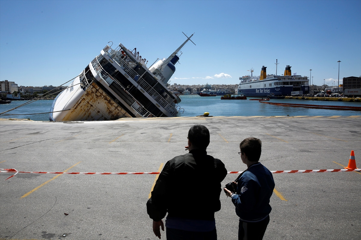ATİNA (AA) - Yunanistan'ın Pire Limanı'na geçen yıl demirleyen yolcu gemisi, öğle saatlerinde su alarak yan yattı.