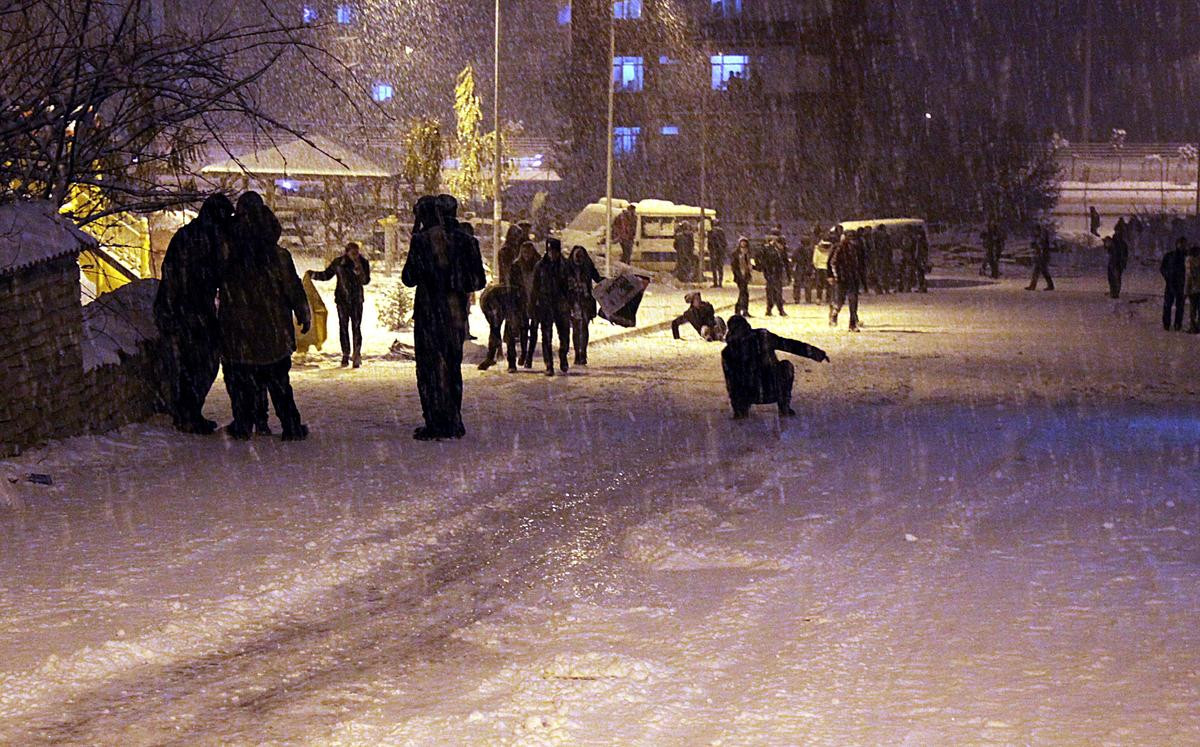 Karla kaplı 1024 No'lu Cadde'ye gelen polis otomobili, vatandaşların kayarak kayganlaştırdığı yolda kontrolünü kaybetti. Polis aracı, bu sırada karda kayan ve aralarında üniversite öğrencilerinin de olduğu 8 kişiye çarptı.