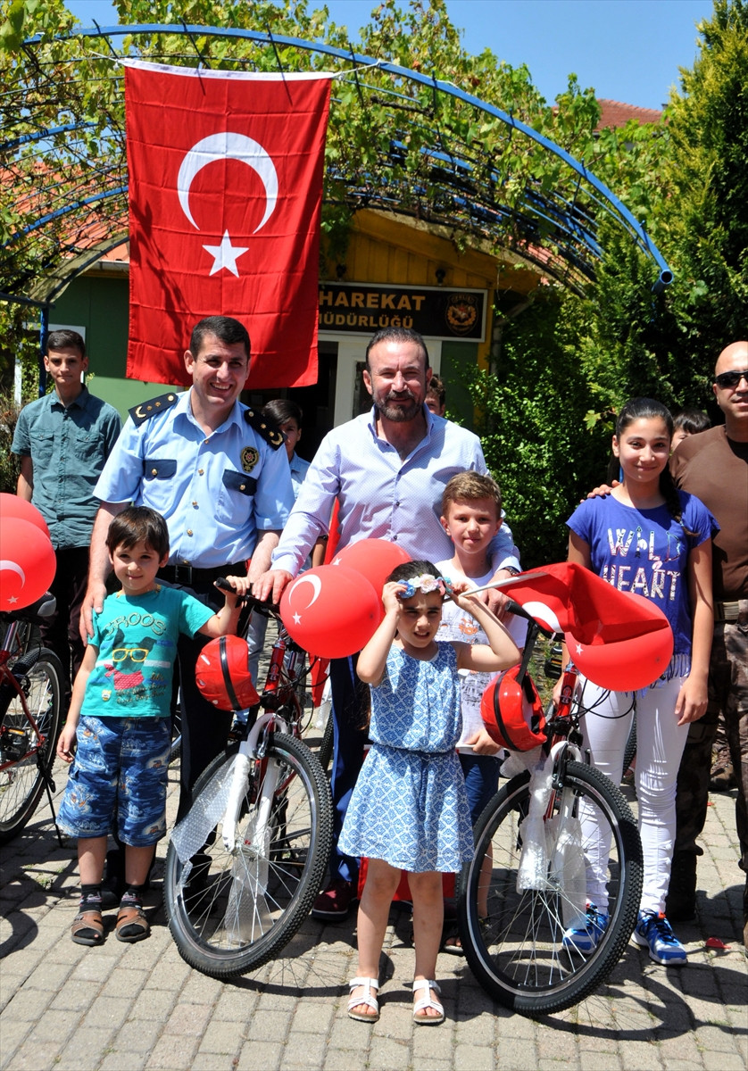 Konuşmaların ardından, Doğan, İl Emniyet Müdür Yardımcısı Zeynettin Sağlam, İl Özel Harekat Şube Müdürü Rıfat Dölcü, belediye başkan yardımcısı Güray Oruç ve belediye meclis üyeleri ile bisikletleri çocuklara teslim etti.