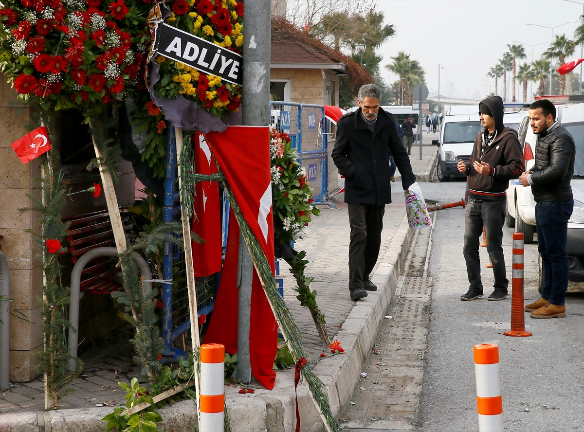 Şehitler için dualar eden vatandaşlar, terör saldırısı sırasında büyük kahramanlık örneği gösteren polis memuru Sekin'in adliye önünde şehit düştüğü yere de karanfiller ve Türk bayrağı bıraktı.
