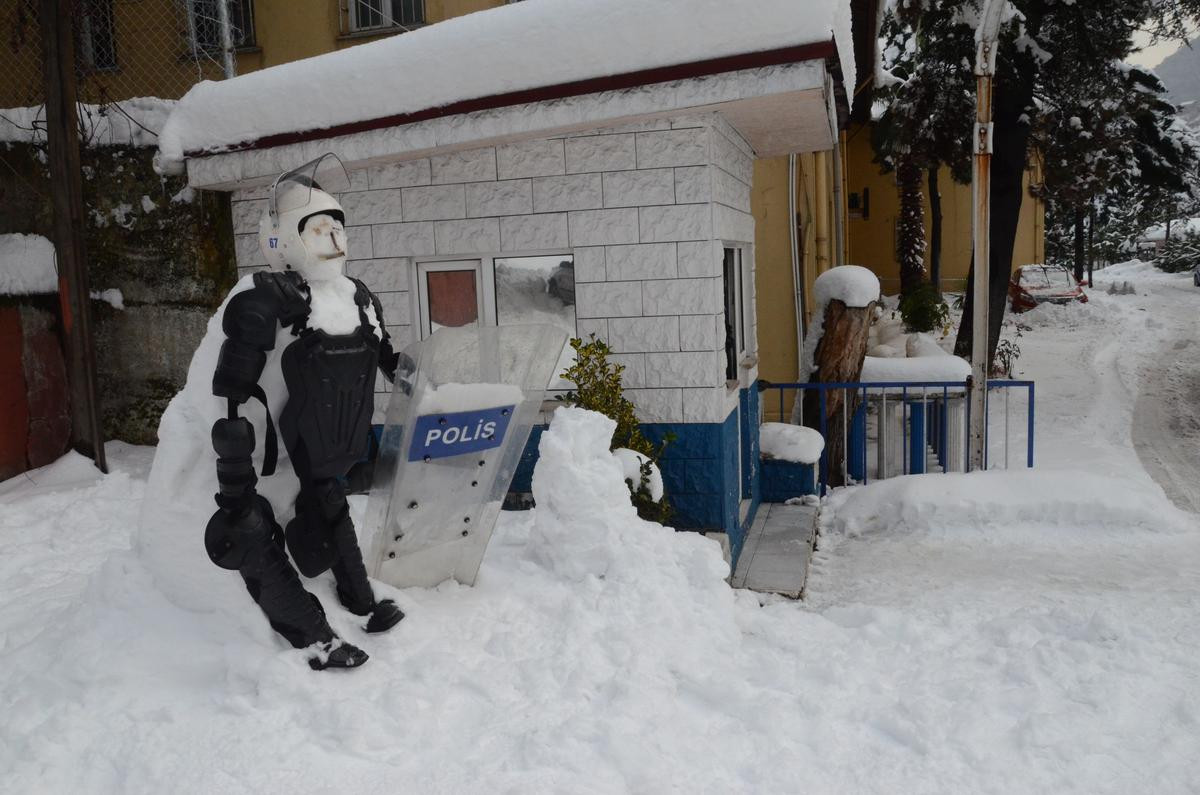 ZONGULDAK (AA) - Zonguldak'ta görev yapan bazı polisler, çevik kuvvet kıyafetleri giydirdikleri kardan adam yaptı.
