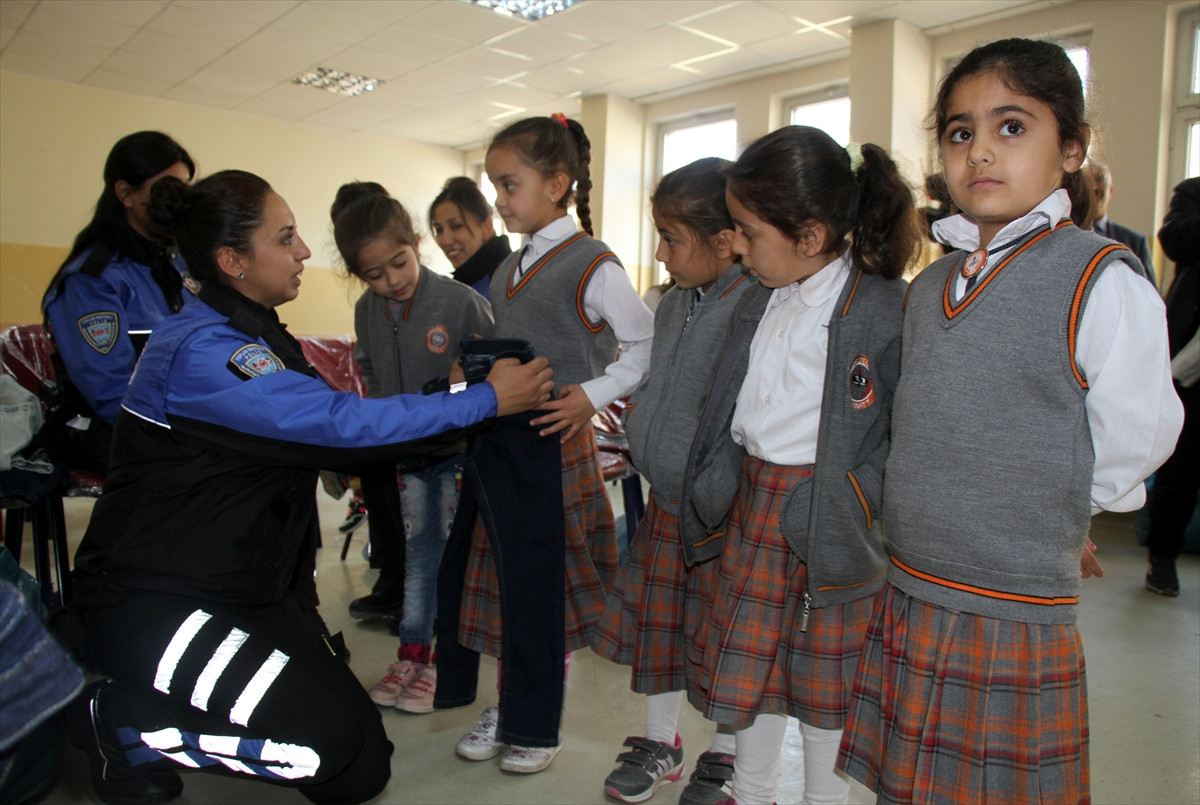 Emniyet Müdürlüğü tarafından temin edilen kıyafetler polis ekiplerince öğrencilere dağıtıldı. Polisler, daha sonra öğrencilerle fotoğraf çektirerek, okul bahçesinde oyunlar oynadı.