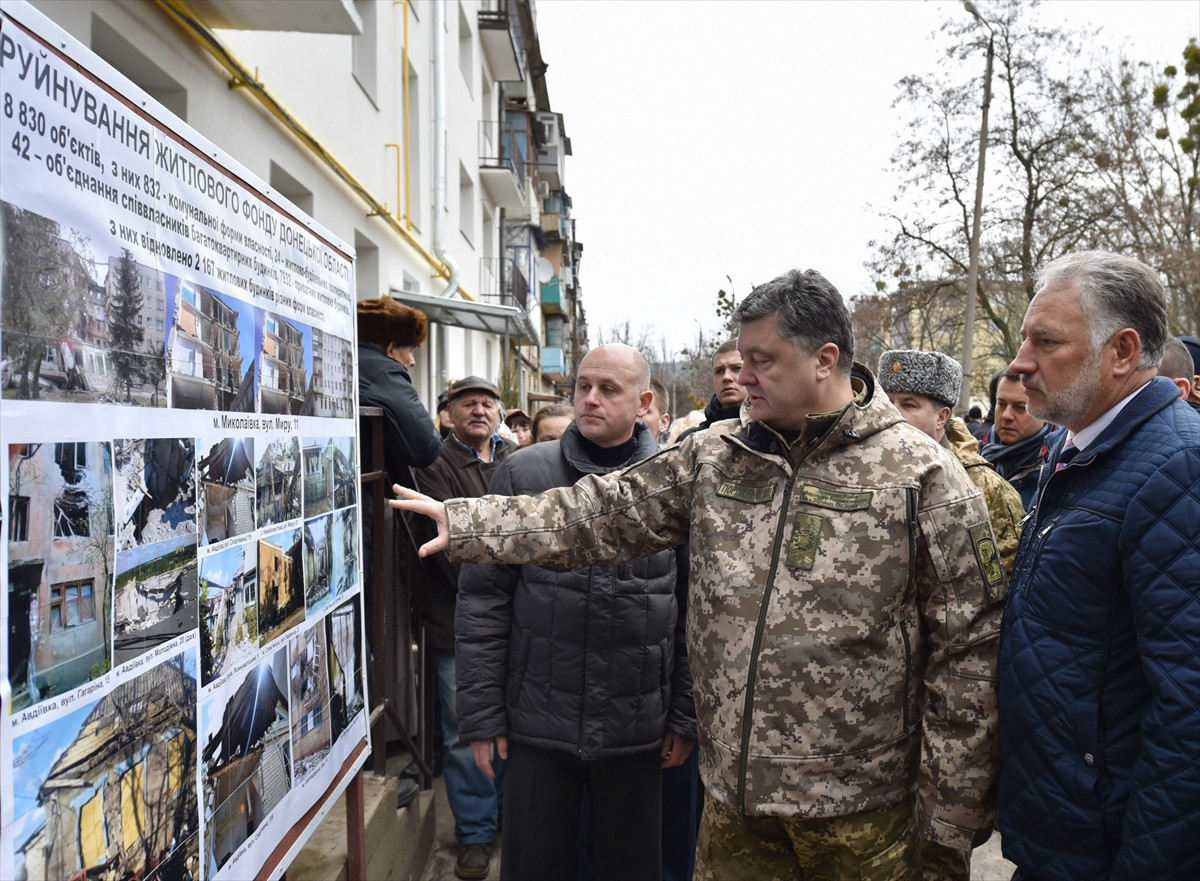 Donetsk bölgesi ziyaretinde, 2014’te Rus ayrılıkçıların tahrip ettiği konutların yeniden inşasını yerinde incelemek üzere Nikolayevka şehrine geçen Poroşenko, burada yaptığı konuşmada, Ukrayna yönetiminin esas önceliğinin Donbas’ta barışın sağlanması olduğunu belirtti.