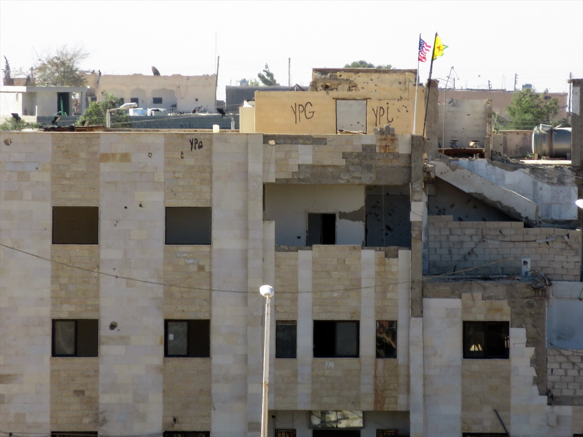 Daha önce terör örgütü PKK/PYD'nin çok sayıda militanının bulunduğu binaya asılan ABD bayraklarından 3'ü indirilmişti.