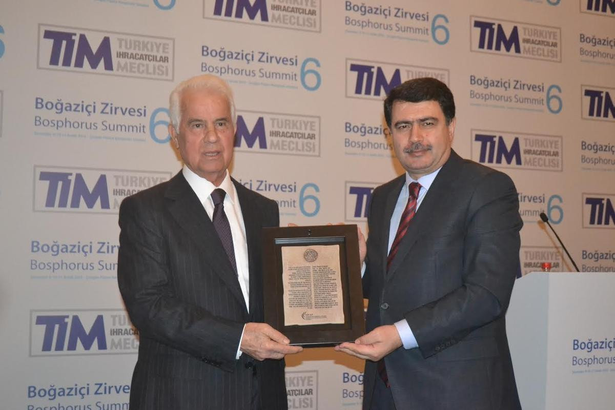 Konuşmasının ardından, Eroğlu'na İstanbul Valisi Vasip Şahin tarafından onur plaketi verildi.
