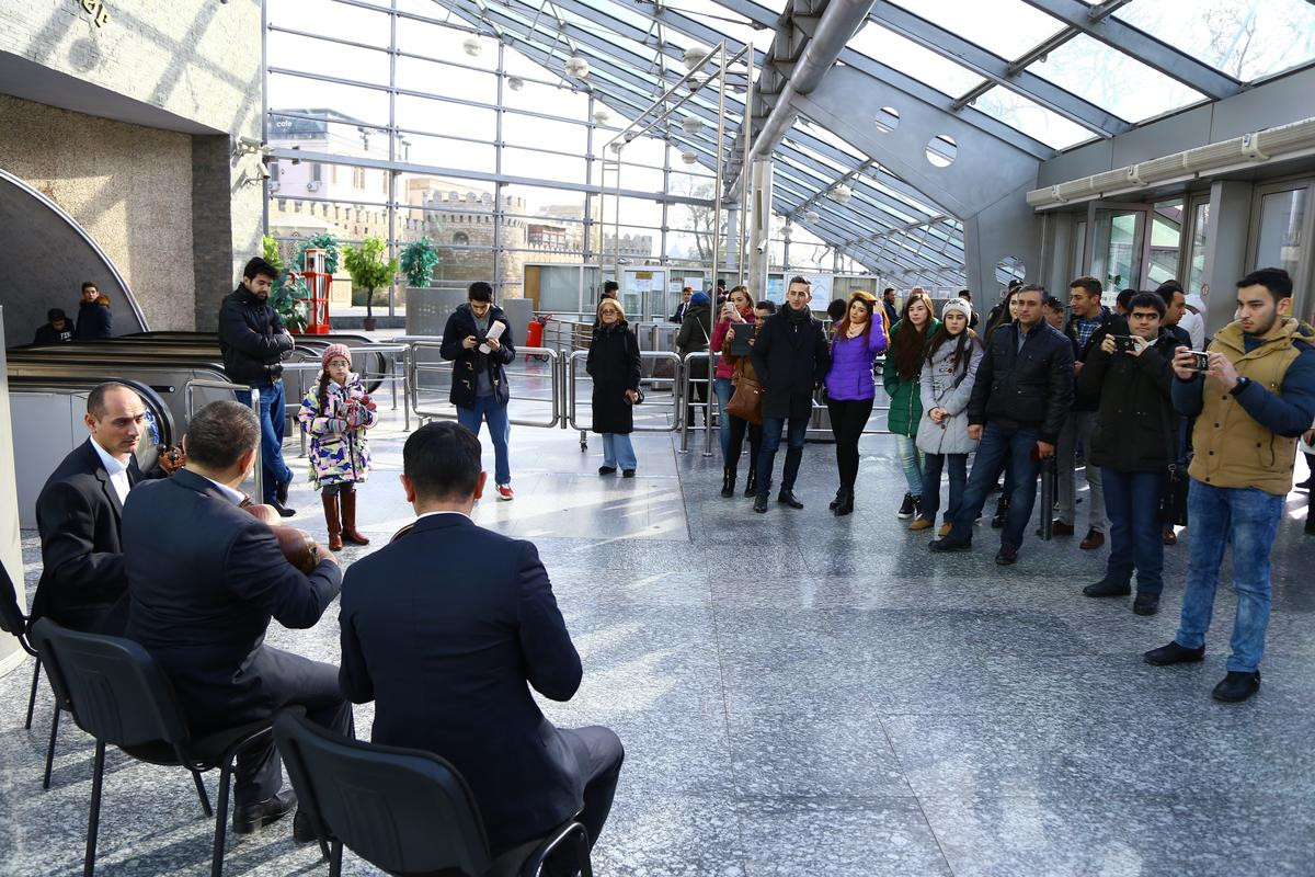 Metroya giren ve yürüyen merdivenlerle metrodan çıkan bazı Bakülüler müzik gösterisi karşısında şaşkınlık yaşarken, bazı vatandaşlar da gösteriyi cep telefonlarına kaydetti. Yerli ve yabancı başka bestecilerin de eserlerini seslendiren müzisyenler, yolculardan büyük alkış aldı.