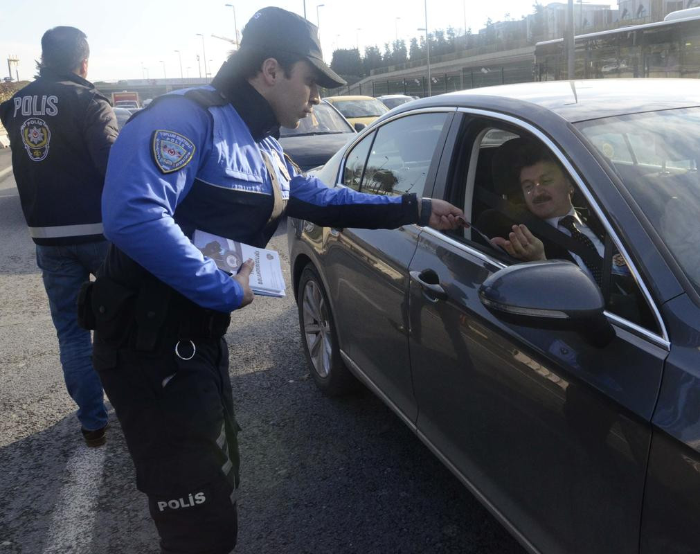 Öte yandan, ekipler otoyollardaki kavşaklarda da araç sürücülerine broşür dağıttı.