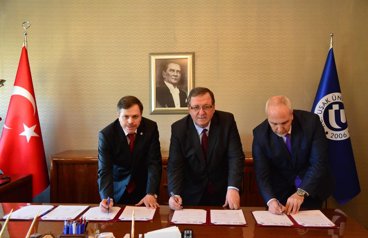 Avrupa Birliğince 4 yıllığına akredite edilen protokolü, Uşak Üniversitesi Rektörü Prof. Dr. Sait Çelik, Afyon Kocatepe Üniversitesi Rektörü Prof. Dr. Mustafa Solak, Celal Bayar Üniversitesi Rektör Yardımcısı Prof. Dr. Birol Kovancılar imzaladı.