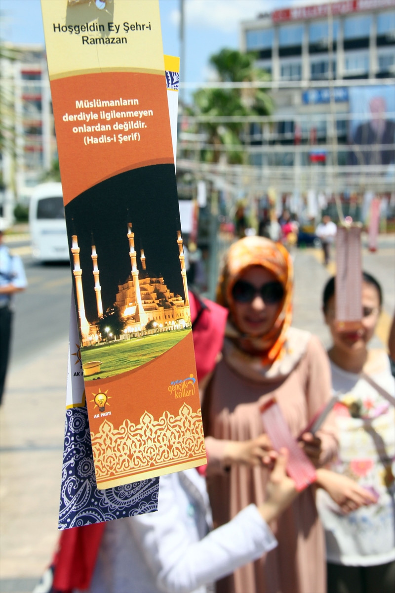 AYDIN (AA) - AK Parti Aydın İl Gençlik Kolları üyeleri, ramazan ayına yönelik farkındalık oluşturmak amacıyla hazırlattıkları ve üzerinde hadislerin yer aldığı 12 bin kitap ayracını vatandaşların alması için kentin farklı noktalarına astı.