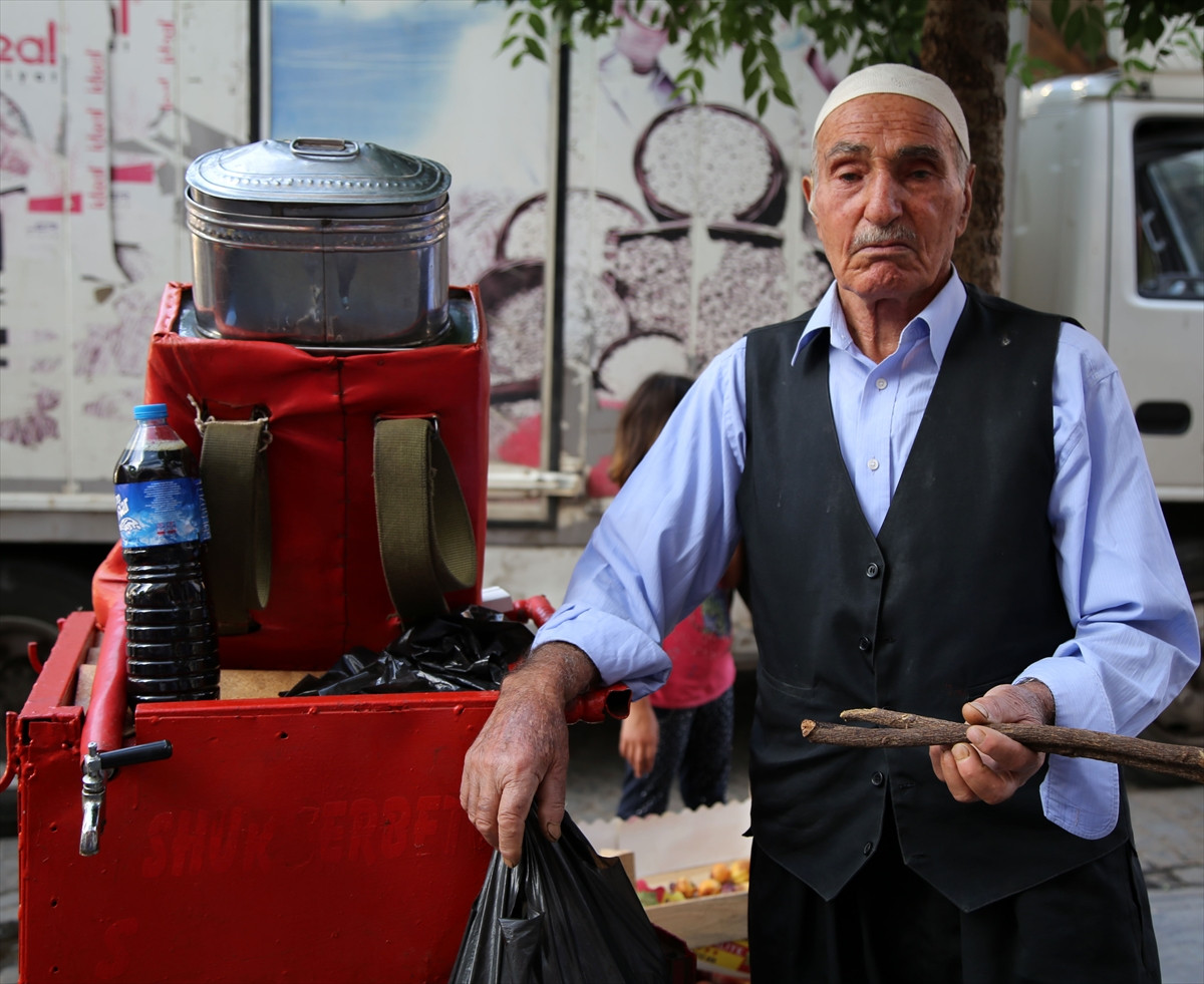 DİYARBAKIR (AA) - Güneydoğu Anadolu Bölgesinde serinletici özelliğiyle bilinen meyan şerbeti sıcak yaz günlerine denk gelen ramazanda iftar sofralarının vazgeçilmezleri arasında yer alıyor. Birçok hastalığa iyi geldiği belirtilen meyan şerbeti, yaz aylarında sıcaklıkların arttığı temmuz ve ağustos aylarında bölgede vatandaşların tercih ettiği en önemli içecekler arasında yer alıyor.Diyarbakır'ın Sur ilçesinde serinlemek için sevilerek tüketilen meyan şerbetinin satıcıları, ramazanda artan satışlardan memnun.Meyan kökü şerbeti satıcılarından Halil Batulay, ramazanda bu şerbete olan ilginin arttığını söyledi. "Meyan kökü şerbeti satarak ramazanda Diyarbakır'ı serinletiyoruz. Meyan şerbeti harareti önlüyor, ferahlatıyor." diyen Batulay, şerbetin şişkinlik yapmadığını, bu nedenle iftarda rahatlıkla tüketildiğini belirtti.Batulay, ilginin yoğun olması nedeniyle satışını yapanların sayısının da her geçen gün arttığına dikkati çekerek, şerbeti de kendilerinin hazırladığını aktardı.Gazi Caddesinde 40 yıldır şerbet satan Sadık Batıbay (72), evde özenle hazırladığı şerbeti iftara yakın saatlerde sattığını kaydetti.Yılmaz Karagöz ise meyan şerbetinin mide, böbrek ve bağırsak için faydalı olduğunu bildiğini ifade etti.Karagöz, "25 yıldır halkımıza meyan şerbeti satıyorum. O kadar yoğun ilgi var ki eve götürmek için bir litre dahi kalmıyor. Şerbet sayesinde ramazanda vatandaşlar serinlerken bizde kazanç sağlıyoruz." diye konuştu.Karagöz'ün oğlu Barış Karagöz de (12), okul harçlığını kazanmak için babasıyla çalıştığını anlatarak, anne ve babasının hazırladığı şerbeti satmaktan mutluluk duyduğunu aktardı.Babadan kalan mesleği devam ettirdiğini dile getiren Reşit Evelek ise meyan şerbetinin Diyarbakır'da her zaman tüketilen ve sevilen bir içecek olduğunu söyledi.Mesleğini severek yaptığını belirten Evelek, "Meyan şerbeti doğal ve katkısız bir içecek. Bize göre eczanede bulunmayan tek ilaç. Vatandaşlara tavsiye ediyoruz. Diyarbakır'a gelenlere tavsiyemiz bu şerbeti içmeden gitmesinler." ifadelerini kullandı.