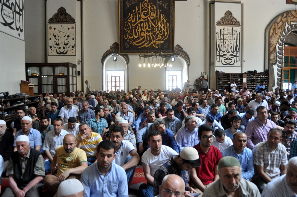 Bursa'da, tarihi Ulu Cami başta olmak üzere camiler dolunca cemaat, avlu ve bahçede namaz kıldı.
