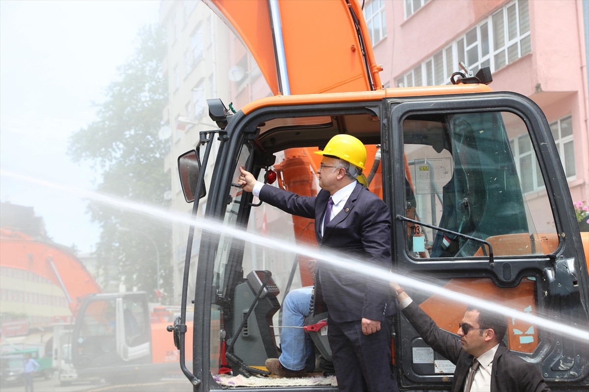 Konuşmaların ardından Kasap, iş makinesine çıkarak ilk yıkım işlemini gerçekleştirdi.