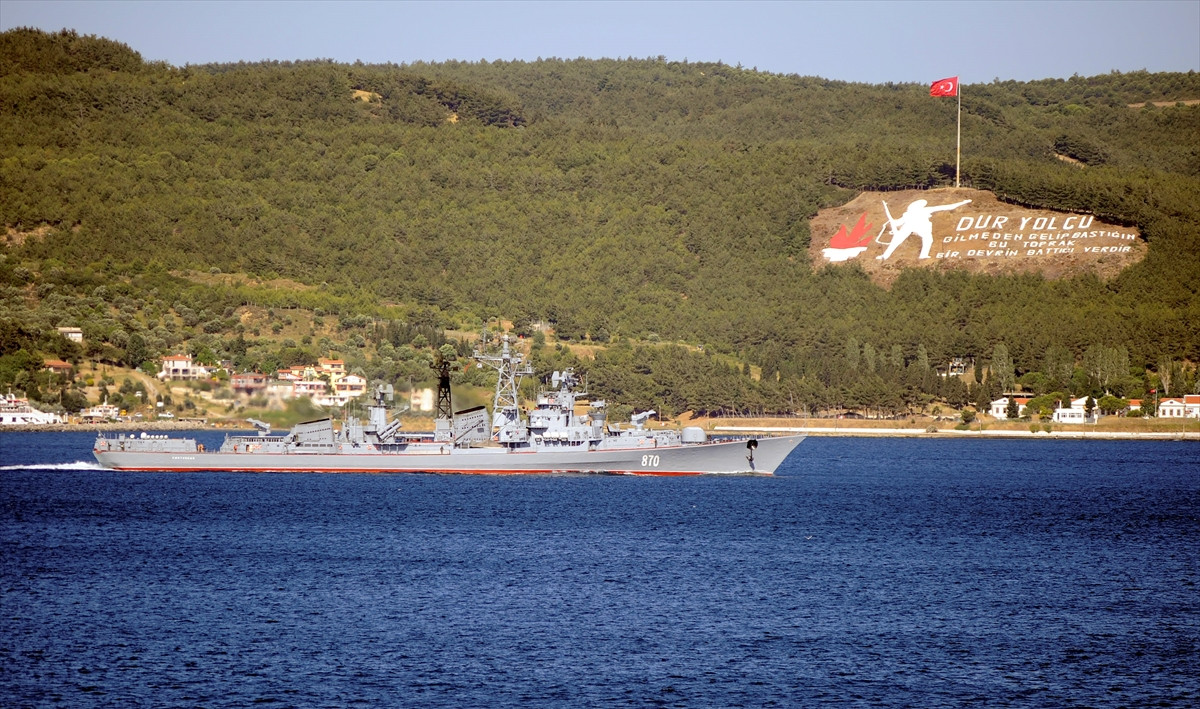 ÇANAKKALE (AA) - Rus Donanmasına ait 2 askeri gemi, Çanakkale Boğazı'ndan geçti.Ege Denizi yönünden boğaza giren 870 borda numaralı "Smetlivy" ve 861 borda numaralı "Ladny" adlı gemiler, Marmara Denizi'ne doğru seyrini sürdürdü.Sahil güvenlik ekibi, gemilere boğazdan geçişi sırasında botla eşlik etti.Gemilerin gideceği liman hakkında bilgi verilmedi.
