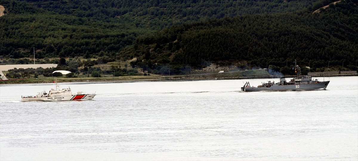 "Kovrovets" adlı 913 borda numaralı gemi, Ege Denizi yönünden gelip boğaza girdi.