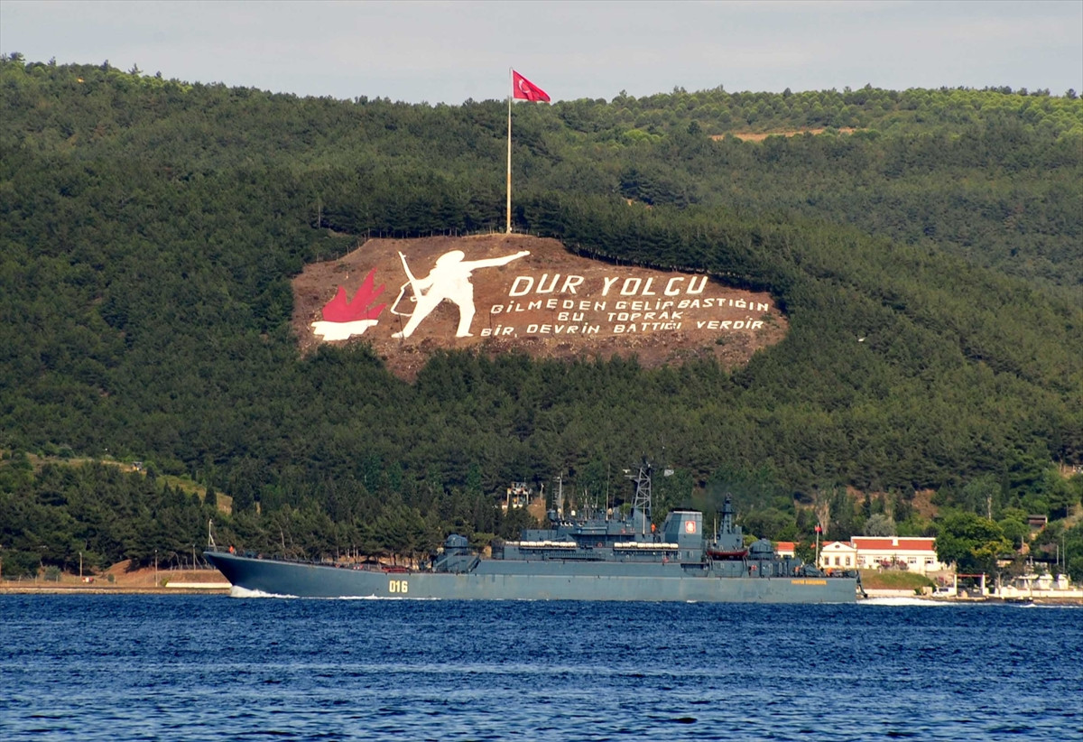 ÇANAKKALE (AA) - Rus Donanmasına ait bir gemi, Çanakkale Boğazı'ndan geçti.