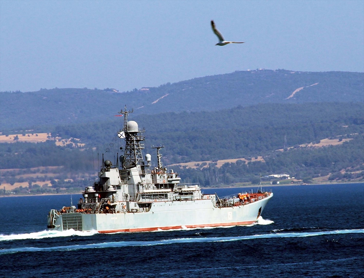 ÇANAKKALE (AA) - Rus donanmasına ait gemi, Çanakkale Boğazı'ndan geçti.