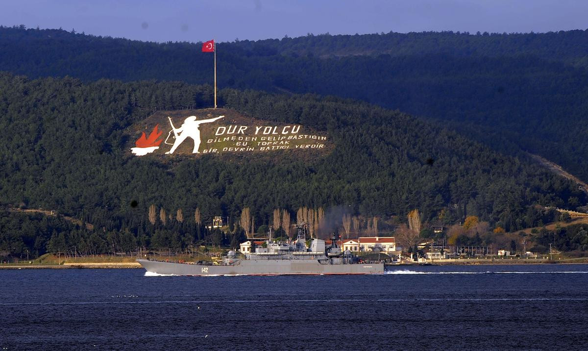 ÇANAKKALE (AA) - Rus donanmasına ait bir askeri gemi Çanakkale Boğazı'ndan geçti.