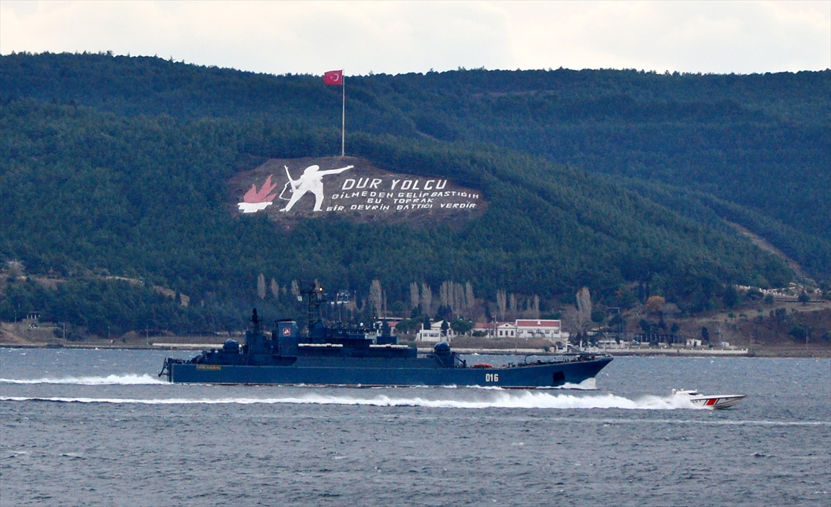 ÇANAKKALE (AA) - Rus donanmasına ait gemi, Çanakkale Boğazı'ndan geçiş yaptı.