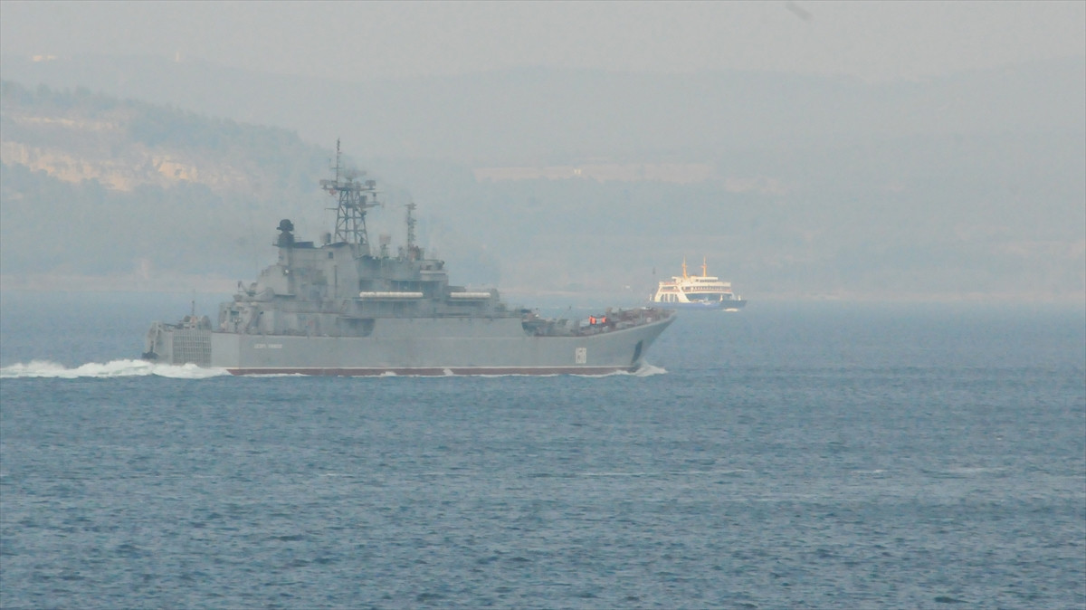 ÇANAKKALE (AA) - Rus donanmasına ait gemi, Çanakkale Boğazı'ndan geçiş yaptı.