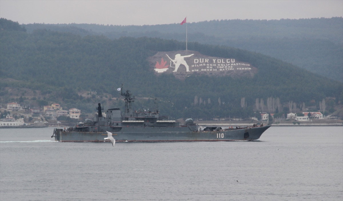 ÇANAKKALE (AA) - Rus donanmasına ait gemi, Çanakkale Boğazı'ndan geçiş yaptı.