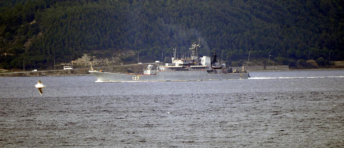 ÇANAKKALE (AA) - Rus Donanmasına ait bir savaş gemisi, Çanakkale Boğazı'ndan geçti.