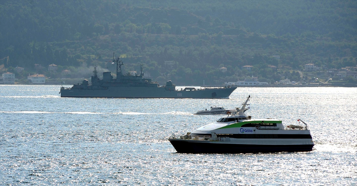 ÇANAKKALE (AA) - Rus donanmasına ait savaş gemisi, Çanakkale Boğazı'ndan geçti.