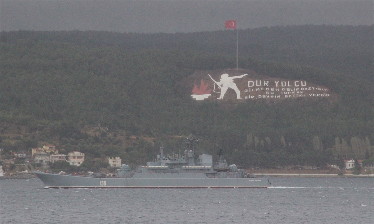 ÇANAKKALE (AA) - Rus donanmasına ait savaş gemisi, Çanakkale Boğazı'ndan geçti.