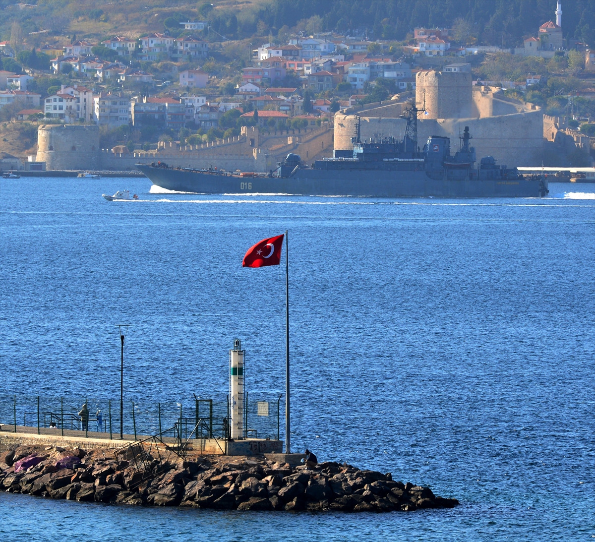 ÇANAKKALE (AA) - Rus donanmasına ait savaş gemisi, Çanakkale Boğazı'ndan geçti.